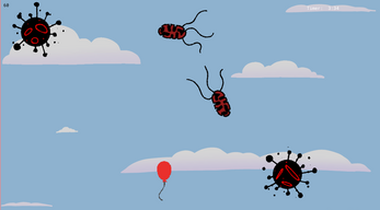 So, what you have here is a “playable” version without (hopefully) any major errors — but also extremely simple! (Basically, it’s just a balloon trying not to get hit by viruses while a timer counts how long you survive!)